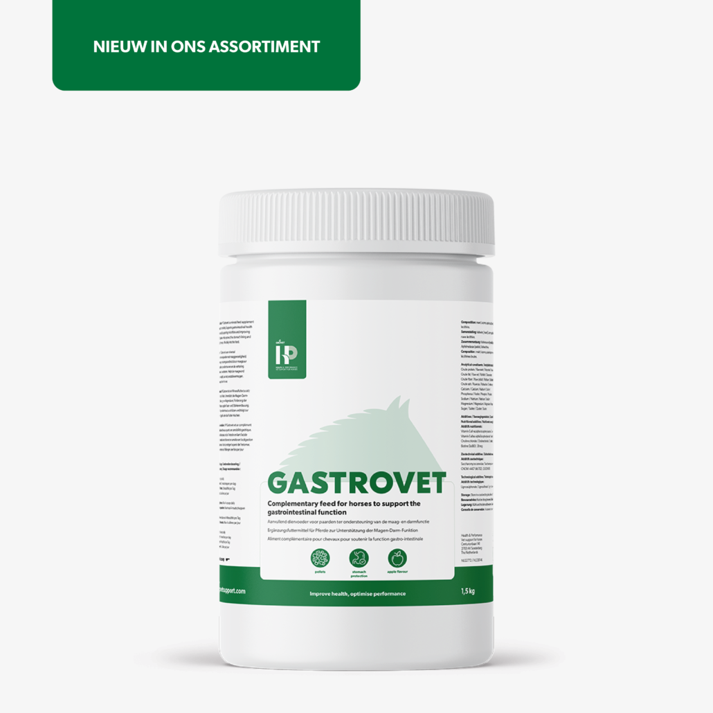 HP Gastrovet is een mineraal voedingssupplement voor paarden met maaggevoeligheid. Ondersteunt de maag- en darmgezondheid door maagzuur te binden, de microflora te ondersteunen en de vertering van vezels en zetmeel te verbeteren. Helpt de maagwand te beschermen en draagt bij aan het prestatievermogen.
